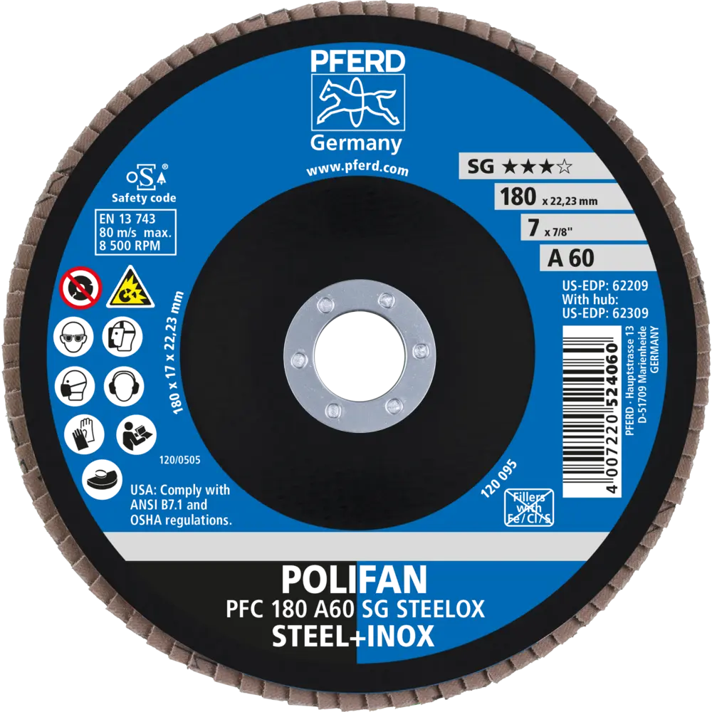 Lamelový brúsny kotúč Pferd PFC 180 A 60 SG STEELOX - nerezová oceľ (PF4007220167854)