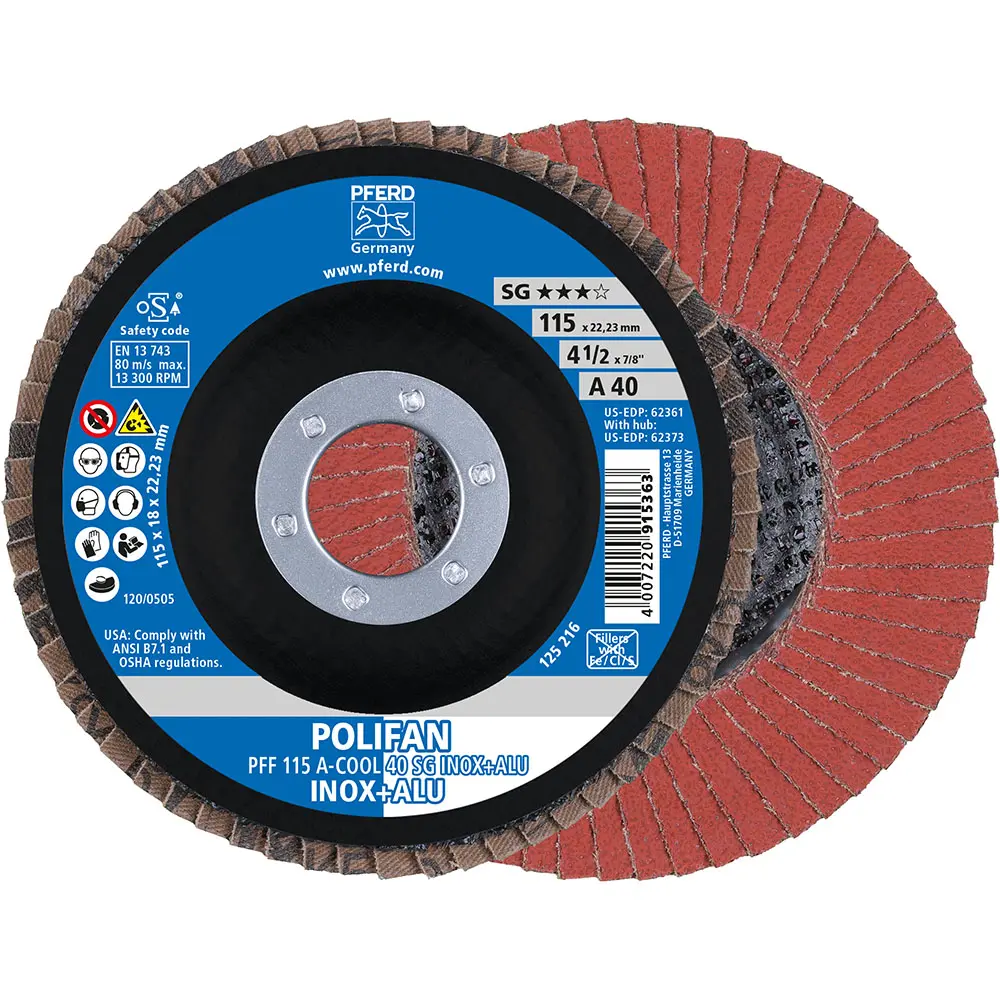 Lamelový brúsny kotúč Pferd PFF 115 A-COOL 40 SG INOX + ALU - nerez a hliník (PF4007220222737)