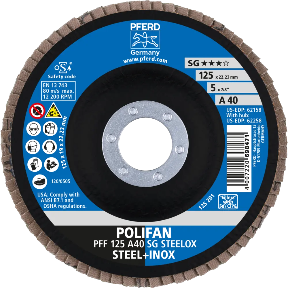 Lamelový brúsny kotúč Pferd PFF 125 A 40 SG STEELOX - nerezová oceľ (PF4007220167502)
