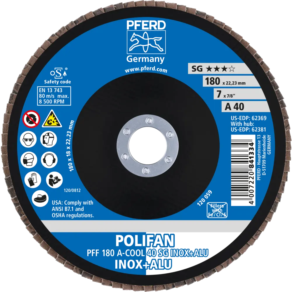 Lamelový brúsny kotúč Pferd PFF 180 A-COOL 40 SG INOX + ALU - nerez a hliník (PF4007220222768)