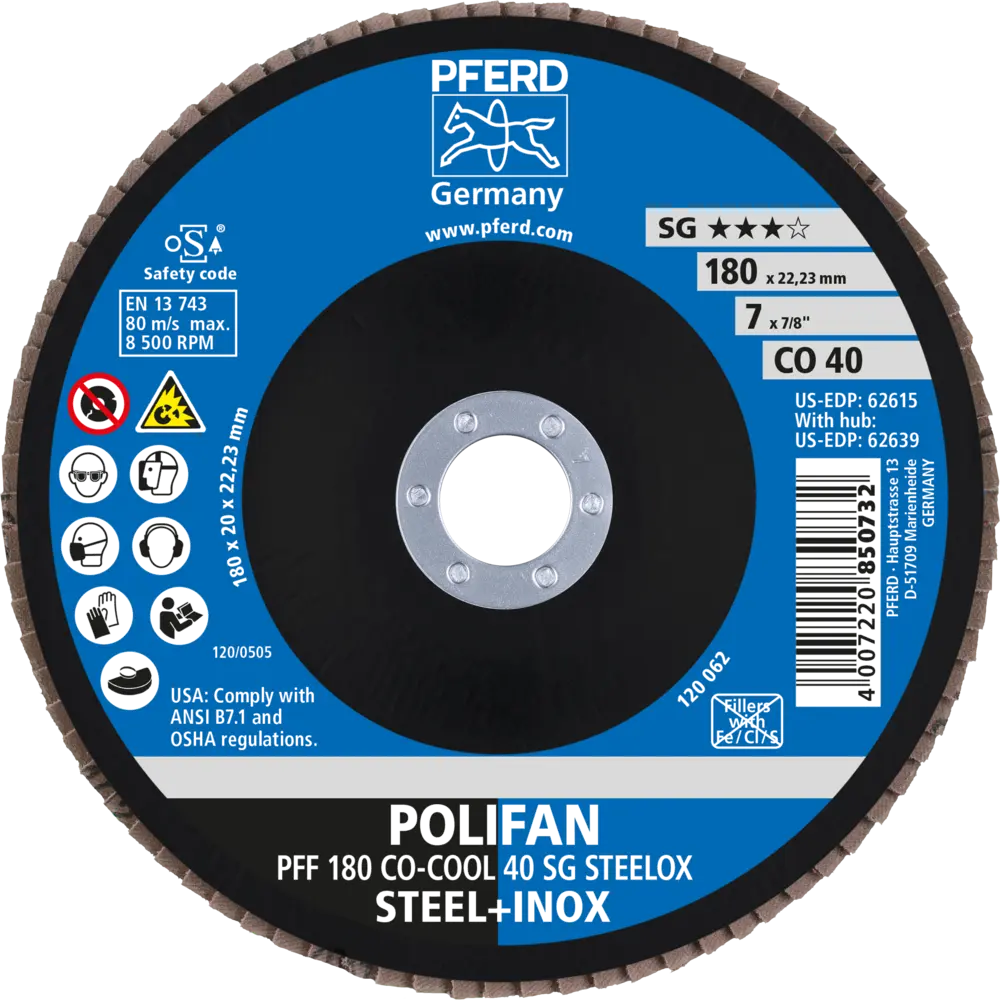 Lamelový brúsny kotúč Pferd PFF 180 CO-COOL 40 SG STEELOX - nerezová oceľ (PF4007220725474)