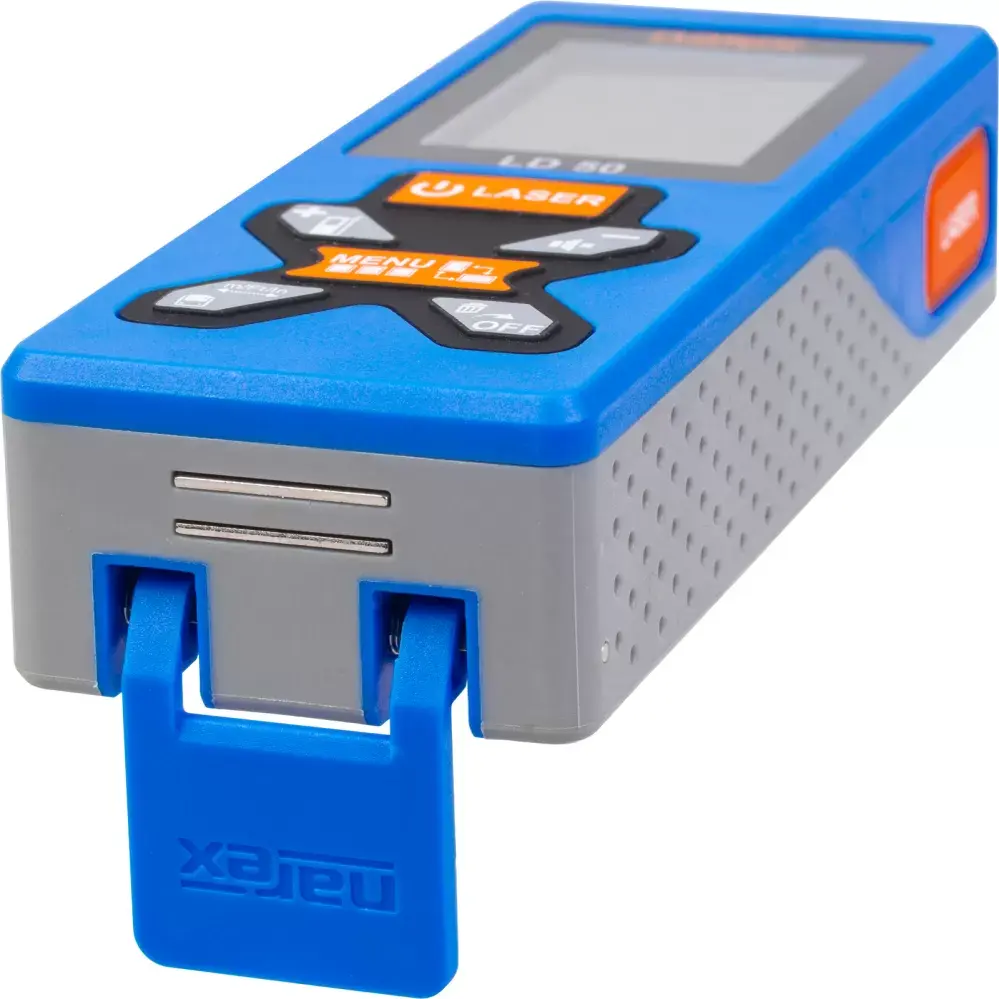 Zabudované silné magnety umožňujú vertikálne alebo horizintálne uchytenie diaľkomeru k feromagnerickým materiálom, zvyšujú tak presnosť merania a zjednodušujú celý rad činností (napr. inštalatérska a sadrokartonárska činnosť)