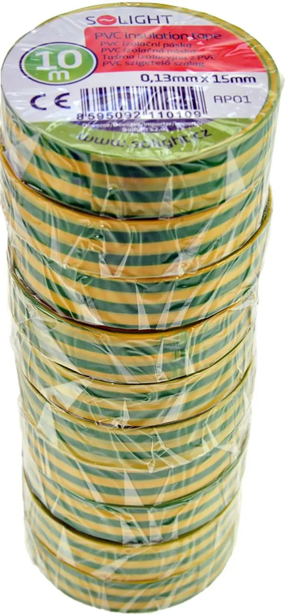 Izolačná páska Solight 15mm x 0,13 mm x 10m, žltozelená (SOLIAP01)