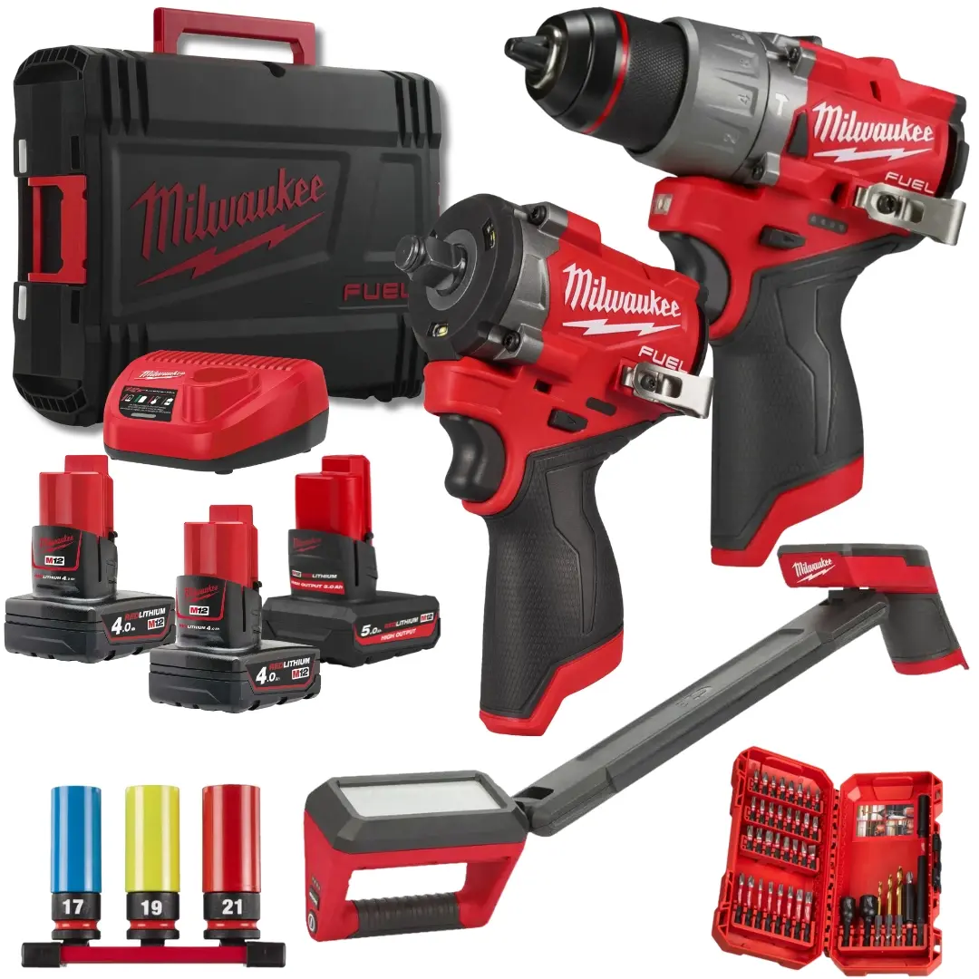 Set elektrického aku nářadí se šroubovákem, utahovákem baterkami s nabíječkou, magnetickým světelem, sadou bitů a nástrčnými hlavice SHOCKWAVE, vhodná pro práci s automobili, v sevisu i v dílně.
