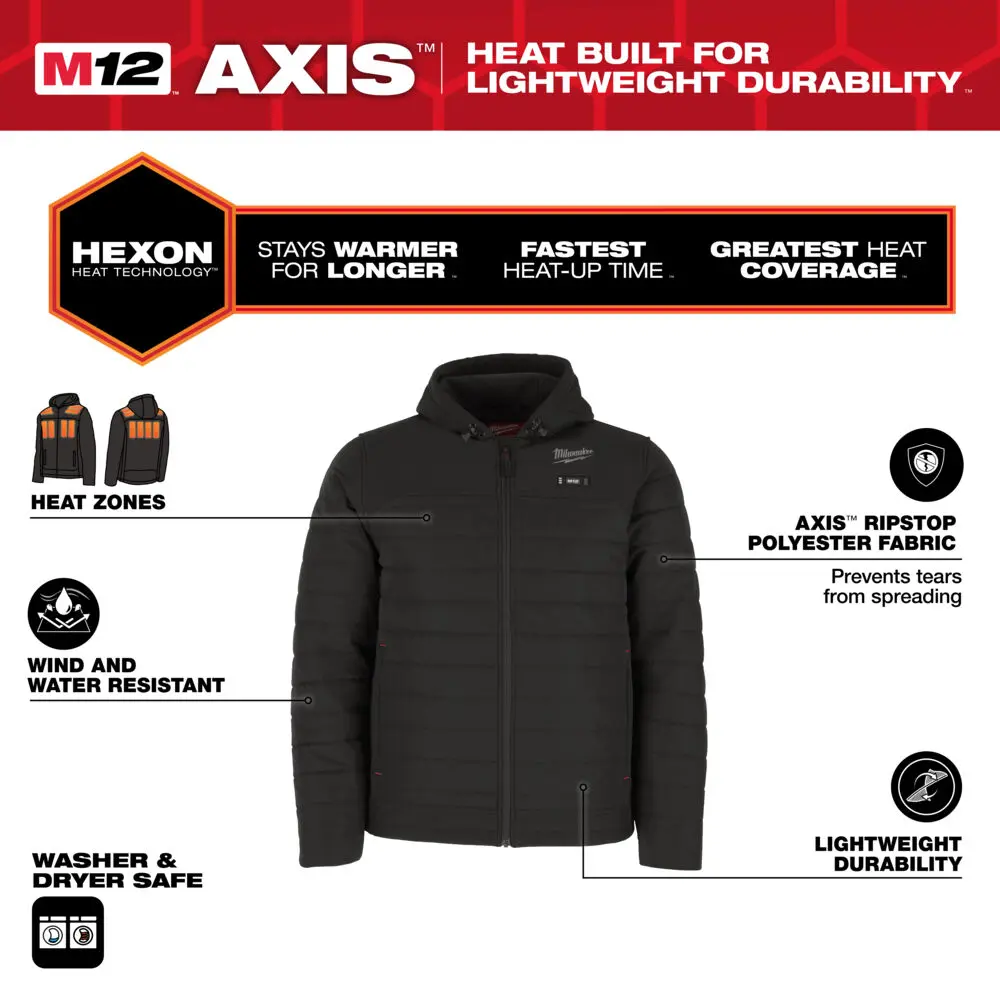 Vyhrievacie zóny sa nachádzajú v oblasti hrudníka a chrbta, čo pomáha účinne zahriať kľúčové oblasti tela. Ovládanie teploty je riešené jednoduchým tlačidlom s niekoľkými úrovňami nastavenia. Bunda je kompatibilná s batériami systému M12™, ktoré sa dajú jednoducho vymeniť.