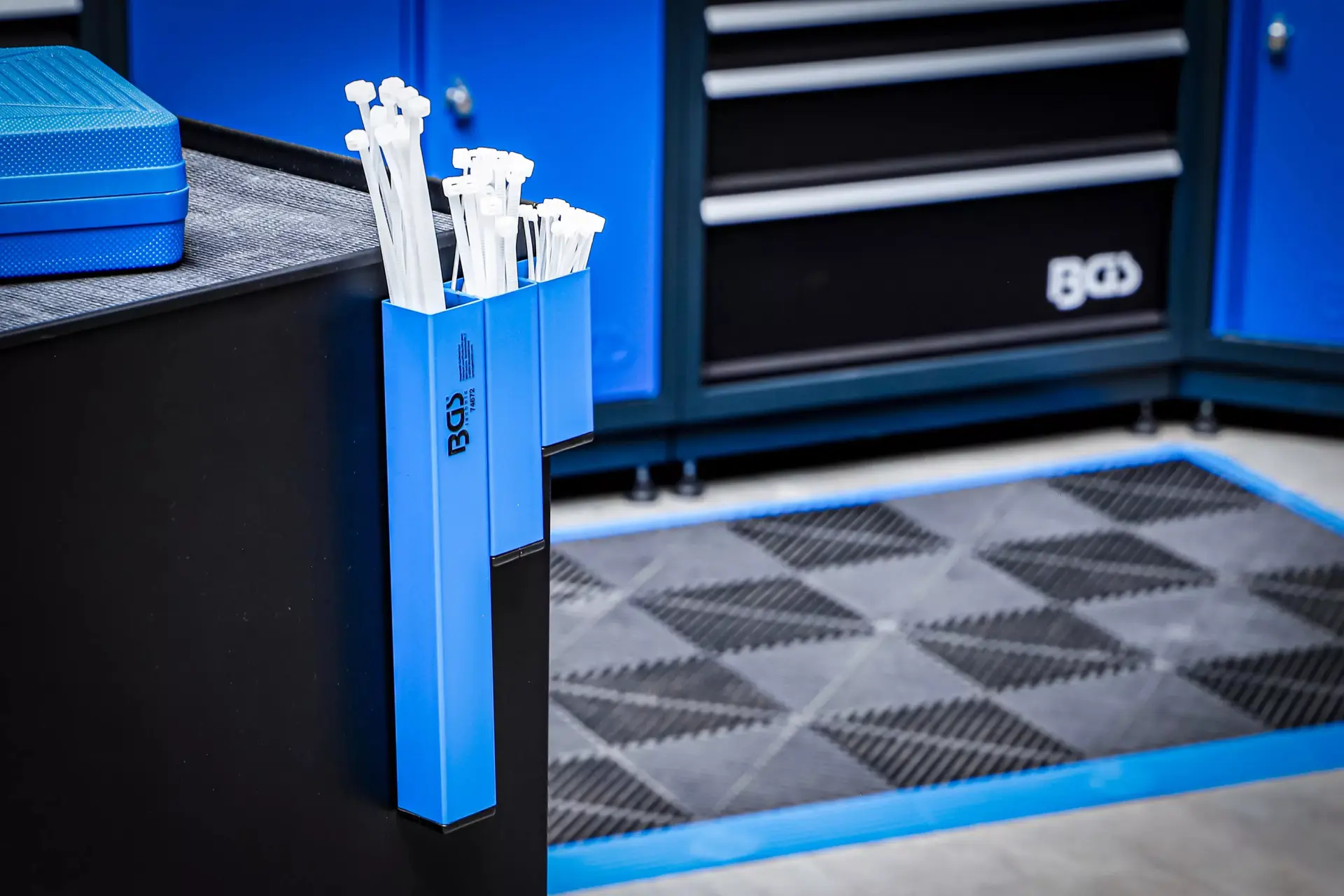 Praktický úložný box na úschovu káblových viazacích pások, umožňuje rýchle uchytenie a prehľadné usporiadanie káblov na pracovnom stole vďaka silnému magnetu a kompaktným rozmerom.