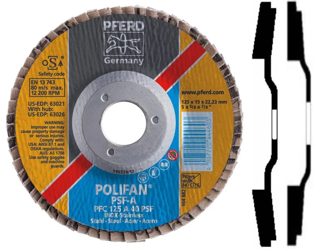 Lamelový brúsny kotúč 180 x 14 x 22,23 mm (60). Oceľ/INOX.PFERD - PSF ZIRKON