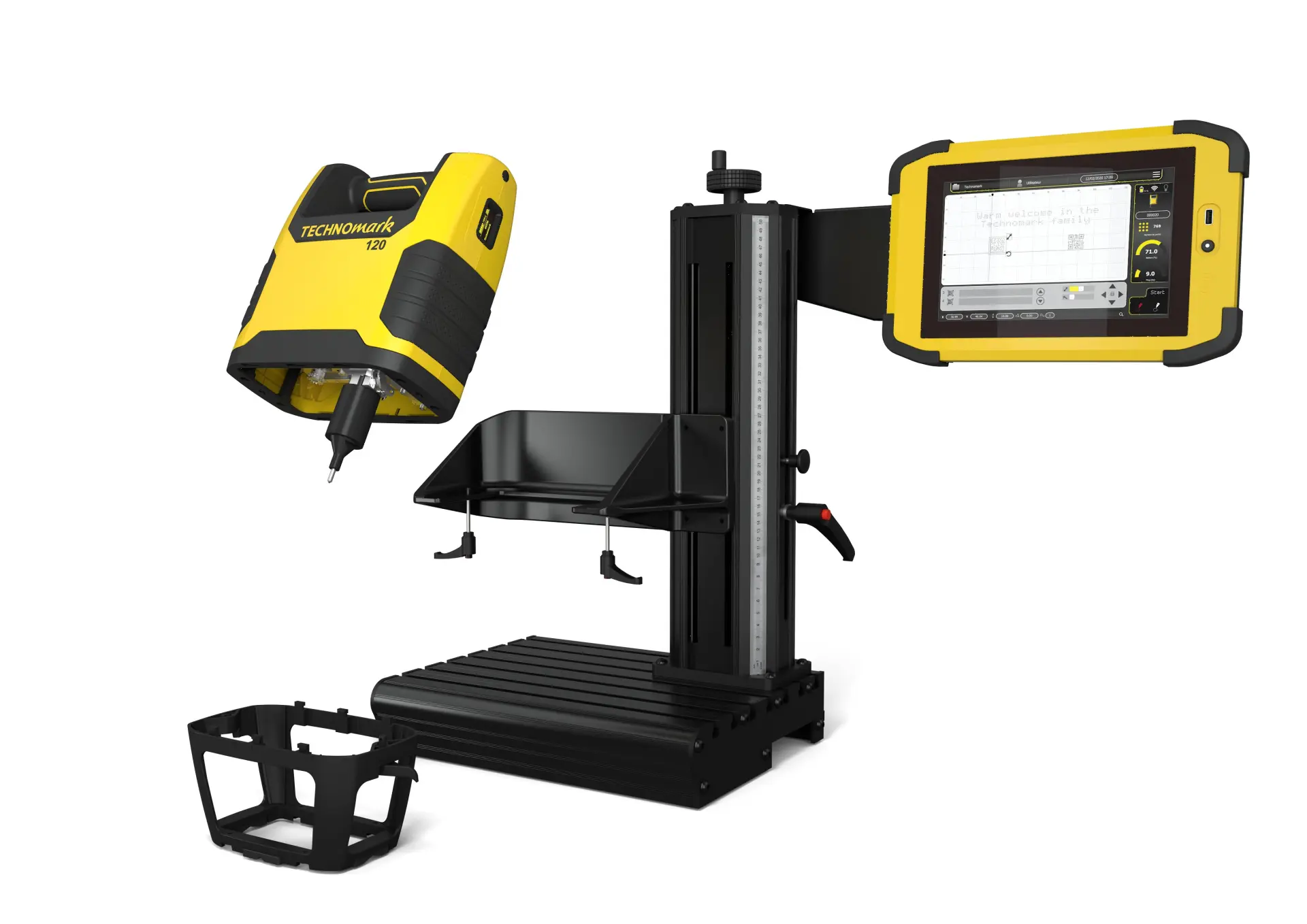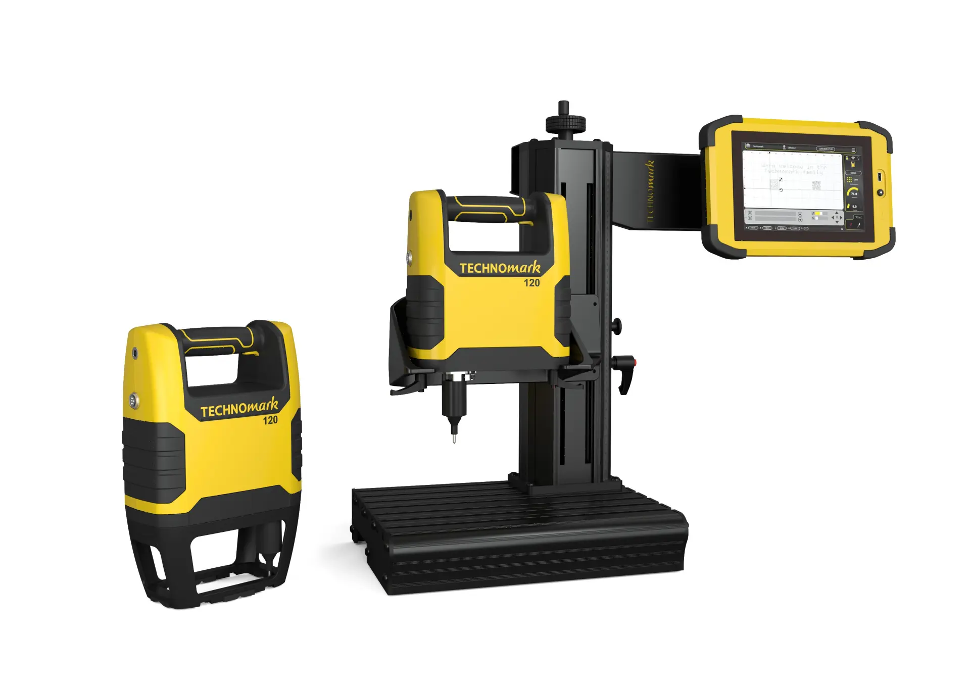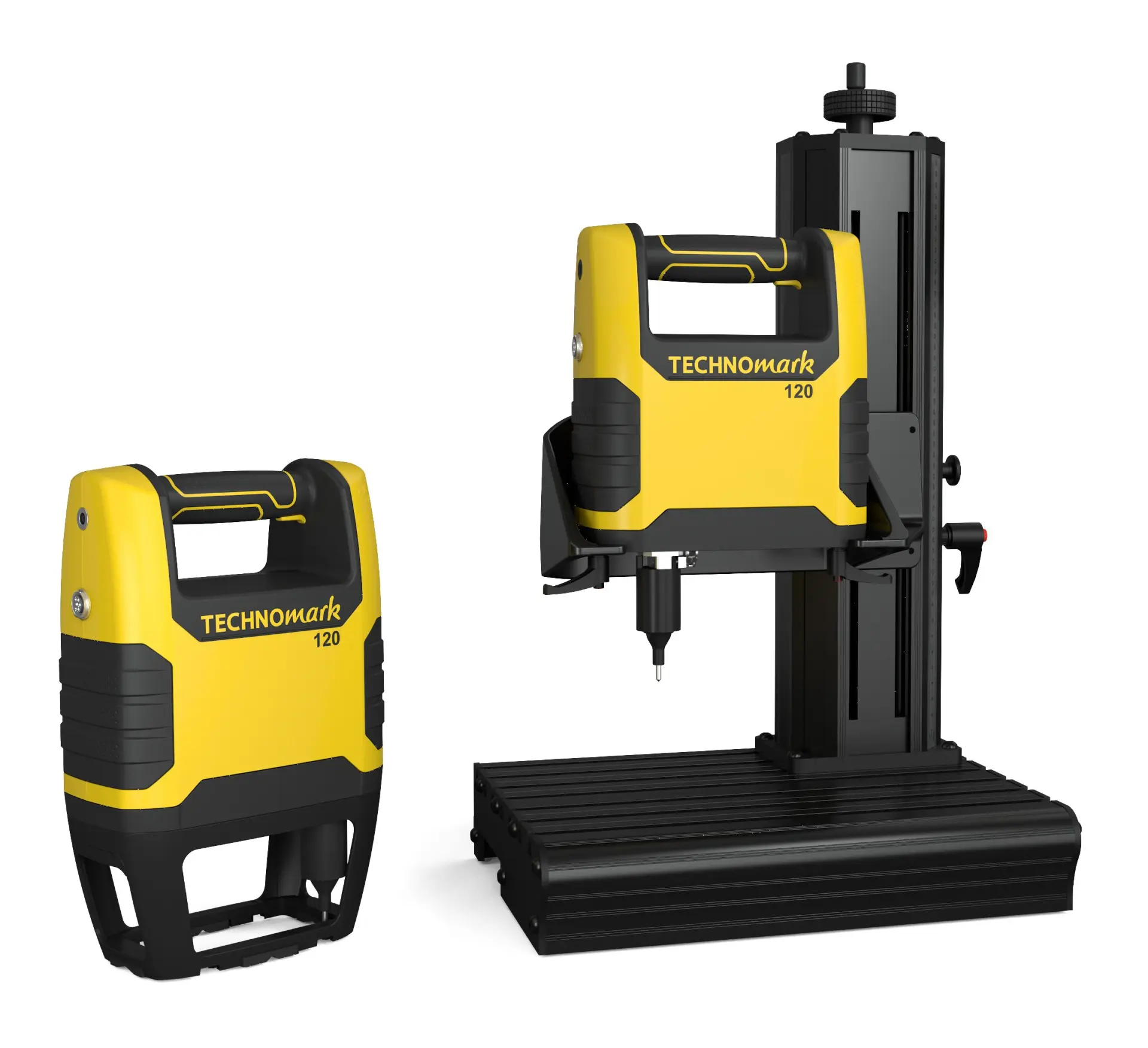 mikroúderové značiace zariadenia TECHNOMARK umožňujú značiť rôzne druhy materiálov vo vysokej kvalite. Značiť možno sklo, keramiku, plasty aj oceľ až do tvrdosti 63 HRC Kombinované zariadenie 2v1