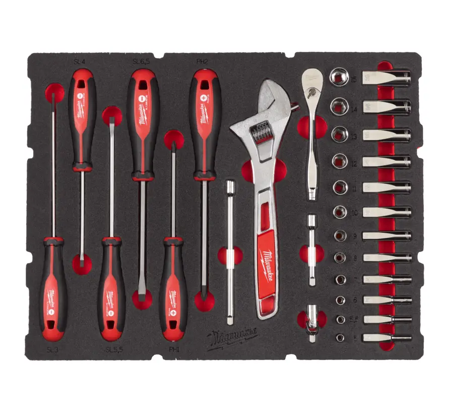 Milwaukee penová vložka 1/4“ s nástrčnými kľúčmi a račňou (35 ks) (MI4932480717)