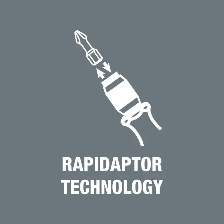 Technológia rýchloupínacieho držiaku bitov Rapidaptor pre bleskovú výmenu bitovs funkciami rapid-in, rapid-out, rapid-spin, chuck-all a single-hand