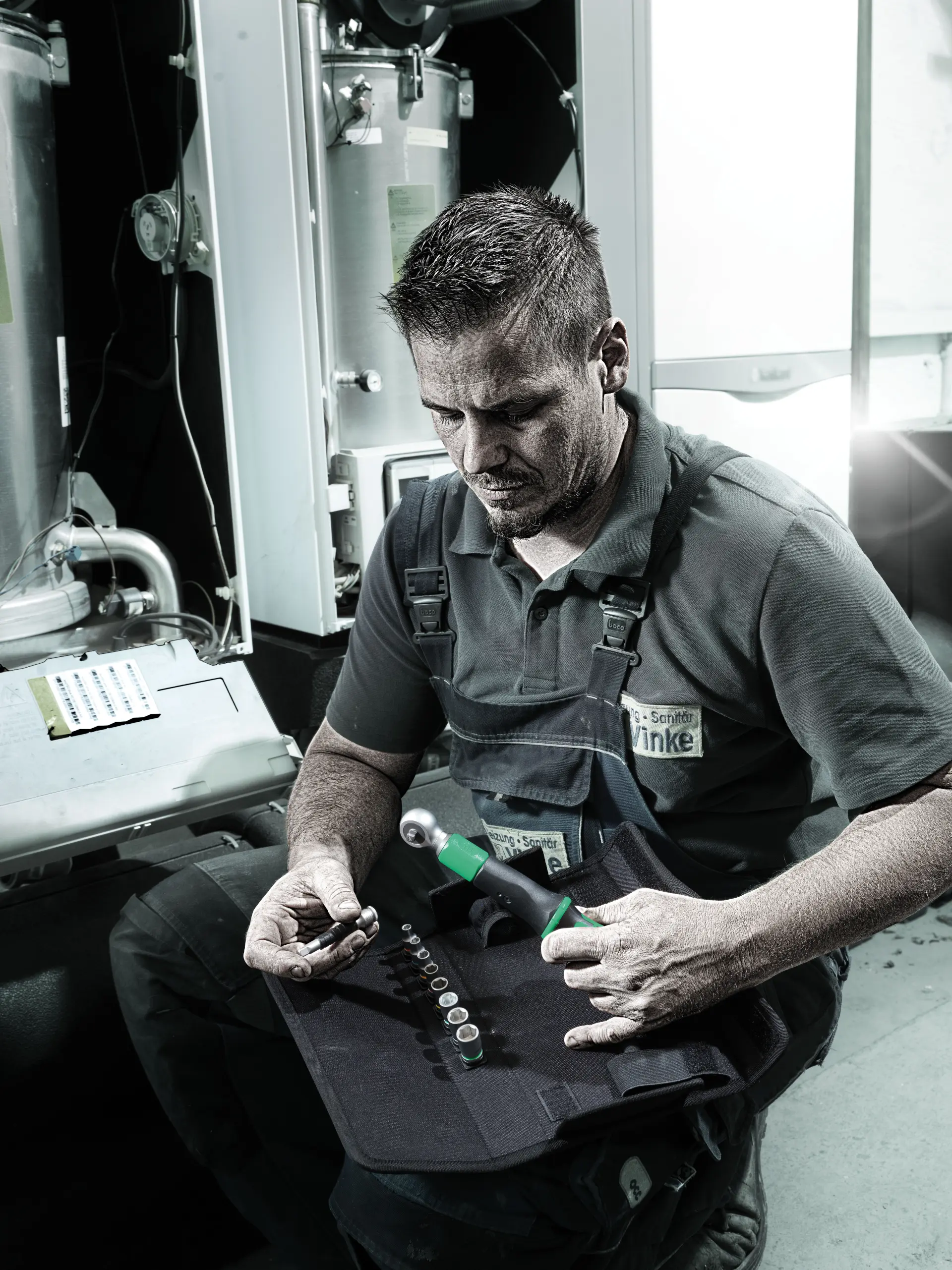 Súčasťou dodávky sady momentového kľúča Safe-Torque vrátane bitov a hlavíc