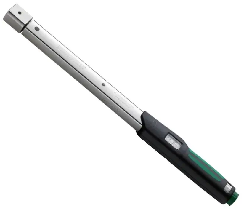 Prevedenie: Extrémne odolný s dlhou životnosťou. Dvojitá stupnica na odčítanie N · ma LBF · ft, čitateľná pomocou stupnice v okienku. Teleso z oceľovej rúrky s 2-zložkovú plastovou rukoväťou, hlava s úchytom pre nástrčné náradia. Bezpečnostné zablokovanie QuickRelease zaručuje bezpečné zaaretovanie a rýchlu výmenu vkladacích nástrojov. Pre kontrolované doťahovanie doprava a doľava. Nie je nutné vynulovanie, pretože meracie prvok sa zaťažuje len pri uťahovaní, ohybová tyč miesto pružiny. Jasne rozoznateľný akustický a cielený spúšťací signál. Jednoduché a pohodlné nastavenie stupnice pomocou stupnicového krúžku s presným nastavením, možnosť dodatočného nastavenia bez demontáže. Dodávka vrátane skúšobného certifikátu.