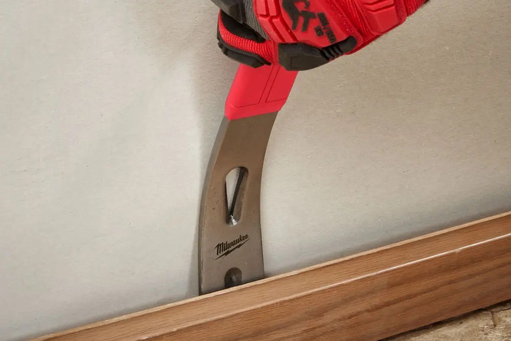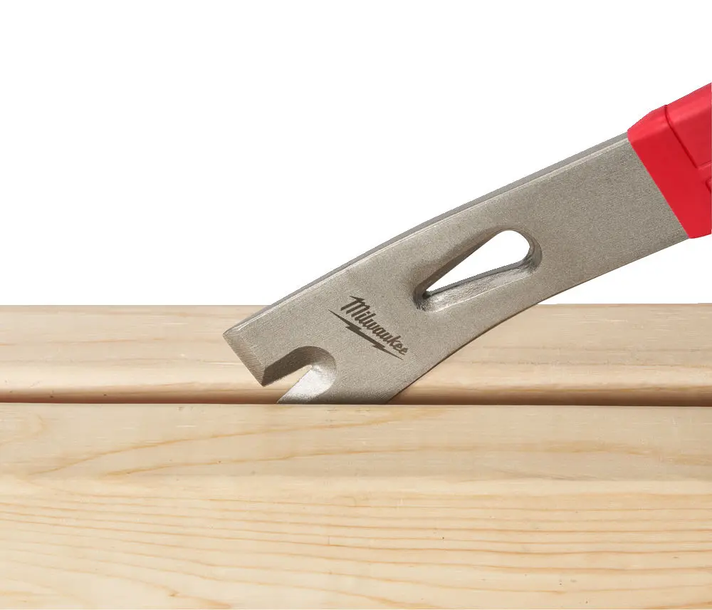 Páčidlo Milwaukee 305 mm je vyrobeno z odolné oceli, má ergonomickou rukojeť a zahnutý konec pro snadné páčení i vytahování hřebíků.
