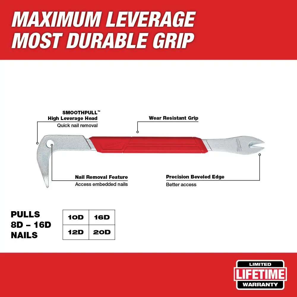 Páčidlo Milwaukee 305 mm je určeno pro vytahování hřebíků a páčení, má ergonomickou rukojeť a odolnou konstrukci z kovu pro dlouhou životnost.