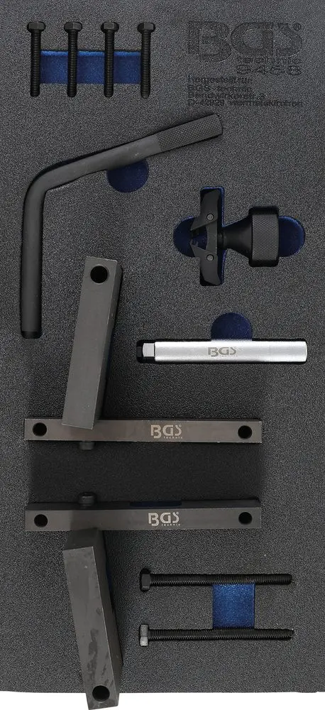 Nářaďový modul 1/3 BGS109458 obsahuje speciální nástroje pro přesné nastavení motoru BMW S65, které usnadňují práci při údržbě a opravách. Kompatibilita s konkrétním typem motoru zajišťuje správné použití a efektivitu.
