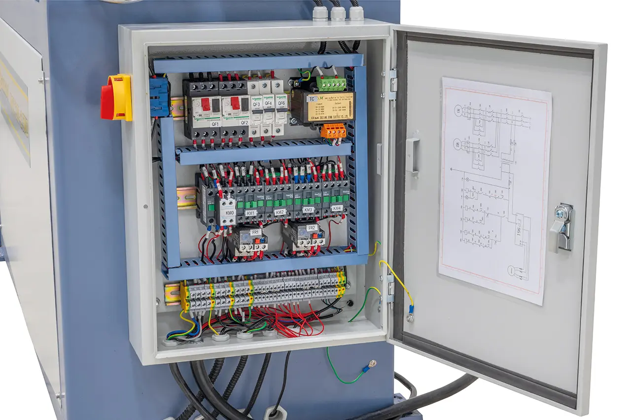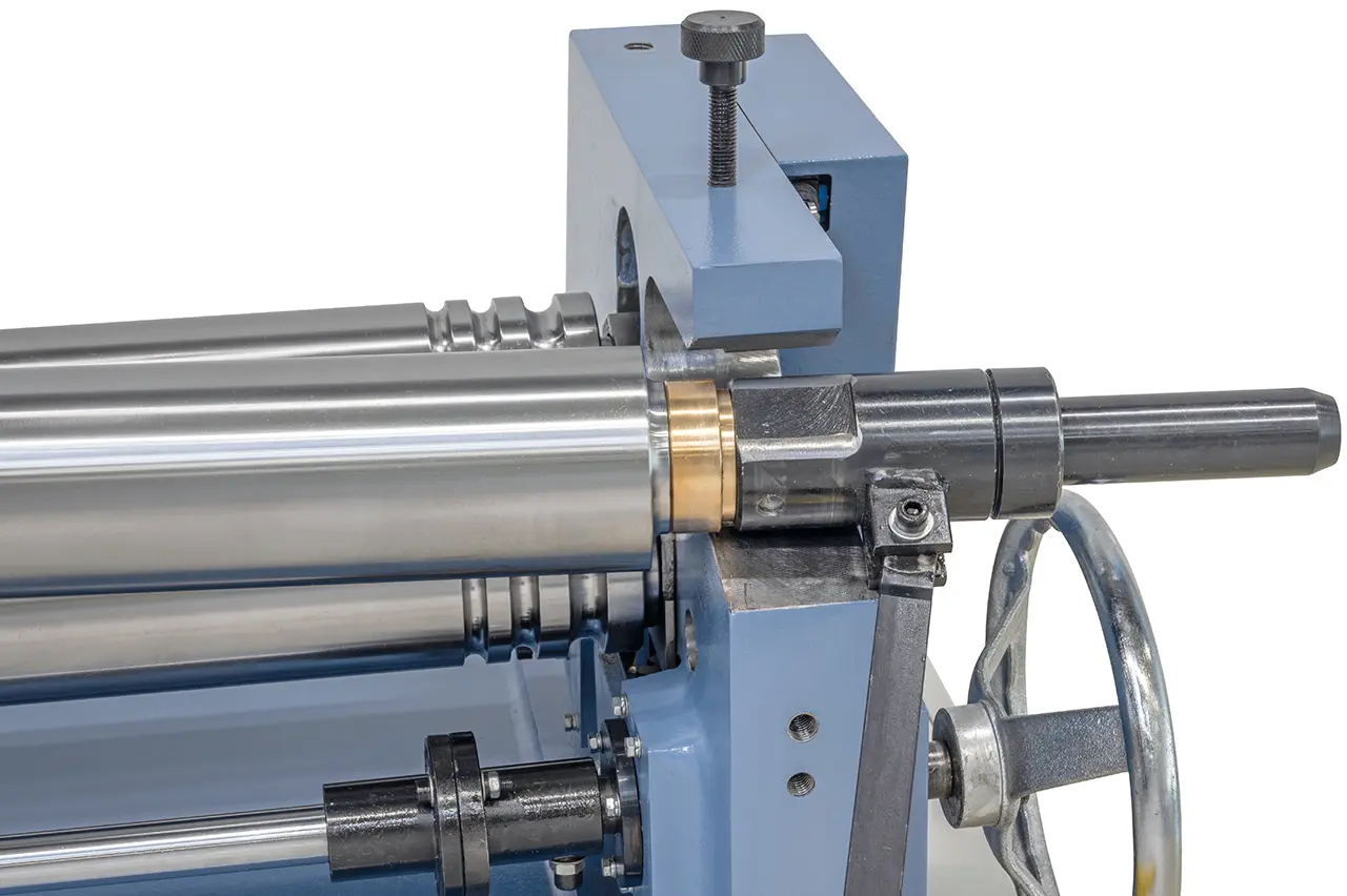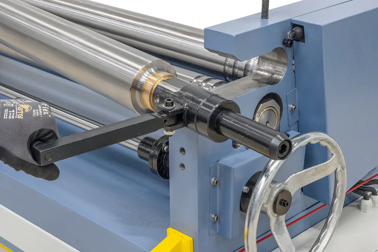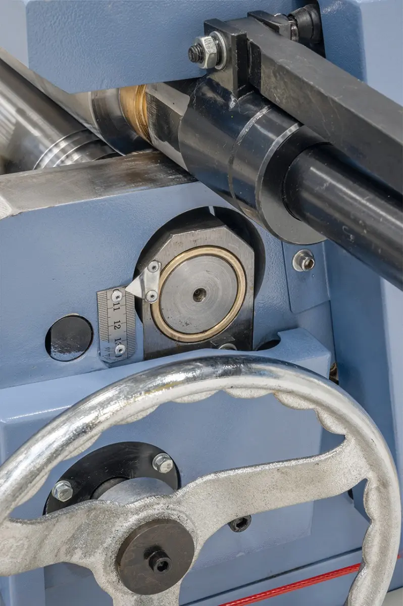 motor 1,1 kW, napätie 400 V, priemer. valce 90 mm, šírka plechu 1300 mm, hr. plechu 2,5 mm, min. pr. zakrúženie 135 mm, otáčky valcov 12 U.min-1, rozmery 1850 × 1040 × 1280 mm