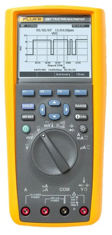 Digitální multimetr FLUKE 287 s grafickým displejem TRMS multimetr s průmyslovým záznamem dat a s funkcí TrendCapture. Velký displej (320x240 bodů), grafické zobrazení naměřených hodnot, 200hodinový nepřetržitý záznam dat. Ideální pro vyhledá