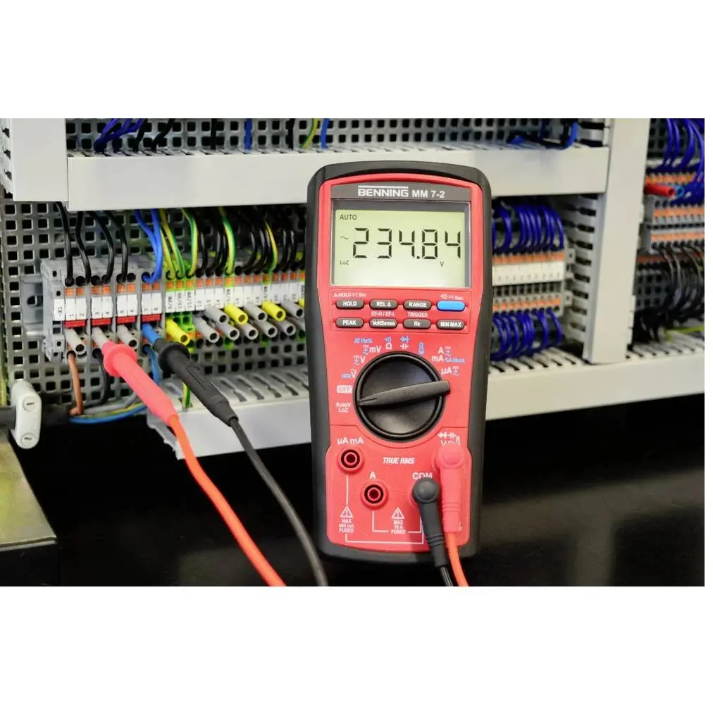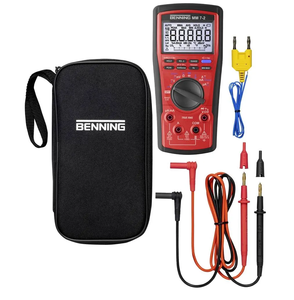 Digitální multimetr Benning MM 7-2 nabízí měření napětí do 1000 V (CAT III) a 600 V (CAT IV), přehledný displej s rozlišením 60 000 counts a robustní konstrukci. Vhodný pro přesné měření v náročných podmínkách elektroinstalací.
