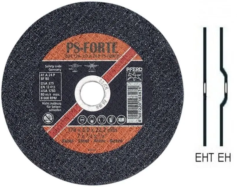 Řezací kotouč EHT 100-2,4 A46 P PS-FORTE / 16,0 - Univerzální nástroj ve tvrdosti P. Technické parametry - D x T/U x H [mm]: 100 x 2,4 x 16,0- Maximální ot. [ot/min]: 15 300 - Balení [ks]: 25 - Hmotnost [g]: 38