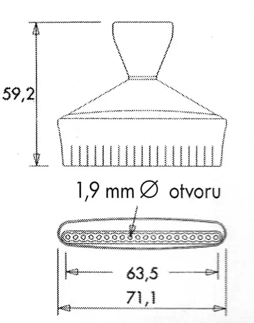 20 otvorov/drážok s priemerom 1,91 mm (0,075")