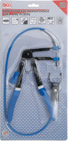 Kleště na palivové potrubí BGS106756 s bovdenem o délce 650 mm umožňují snadné uvolnění a montáž hadic i v hůře přístupných místech motorového prostoru. Robustní konstrukce zajišťuje dlouhou životnost při častém používání.
