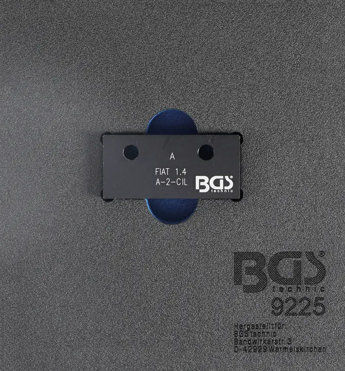 Nářaďový modul BGS109225 slouží k aretaci vačkové hřídele u motorů Fiat a Lancia 1,4 12V, což usnadňuje přesné nastavení rozvodů. Kompatibilita s konkrétními modely zajišťuje správné použití při údržbě motoru.