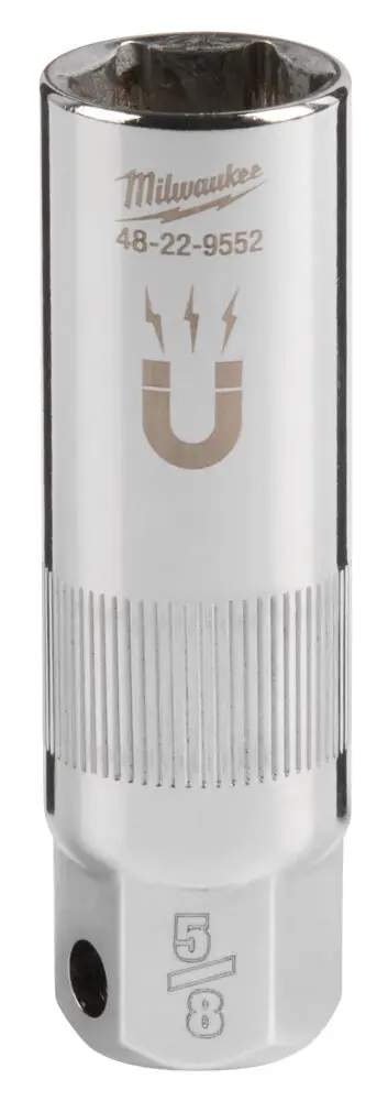 Magnetická nástrčná hlavice Milwaukee 3/8" na svíčky 16 mm usnadňuje manipulaci díky integrovanému magnetu a přesnému uchycení pro efektivní práci v dílně i garáži.