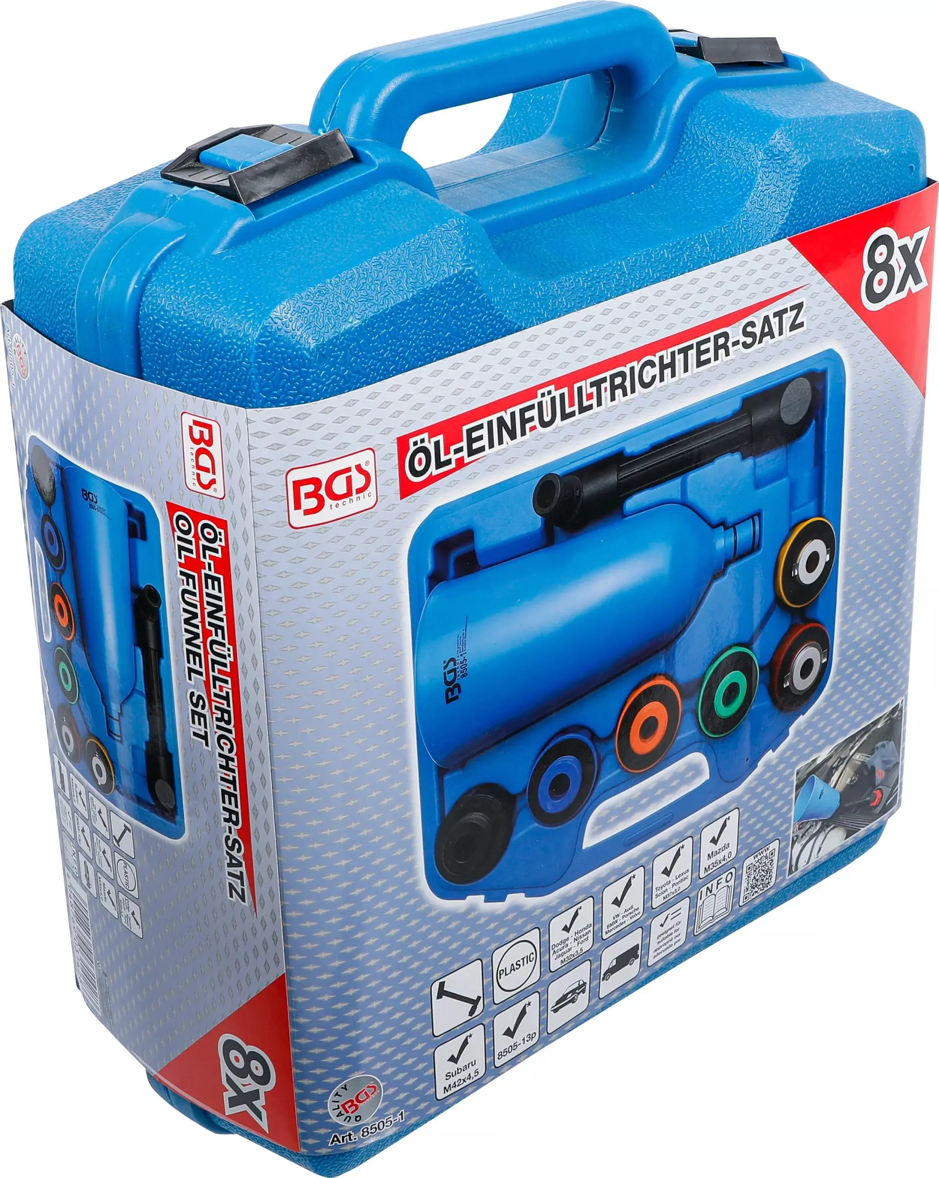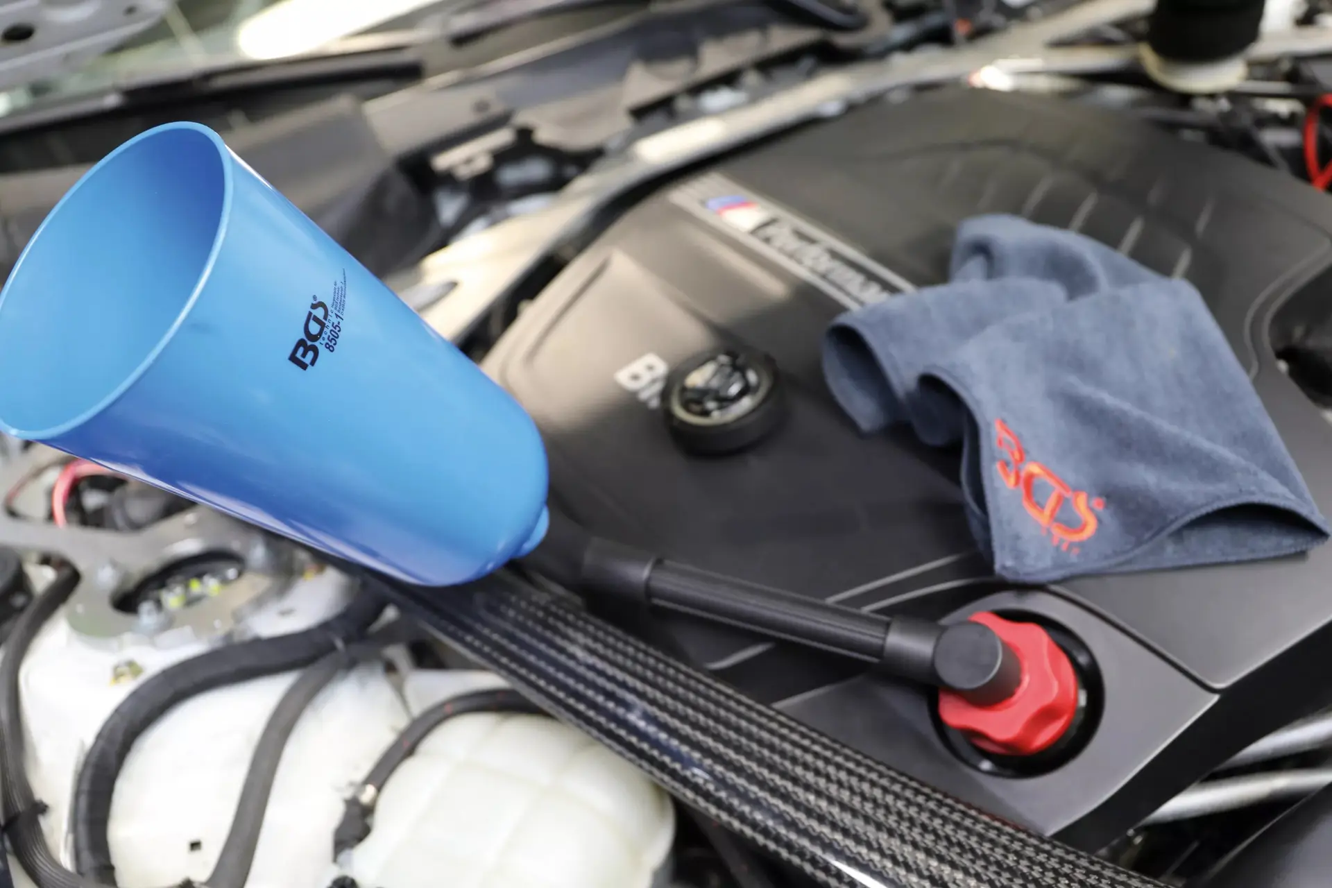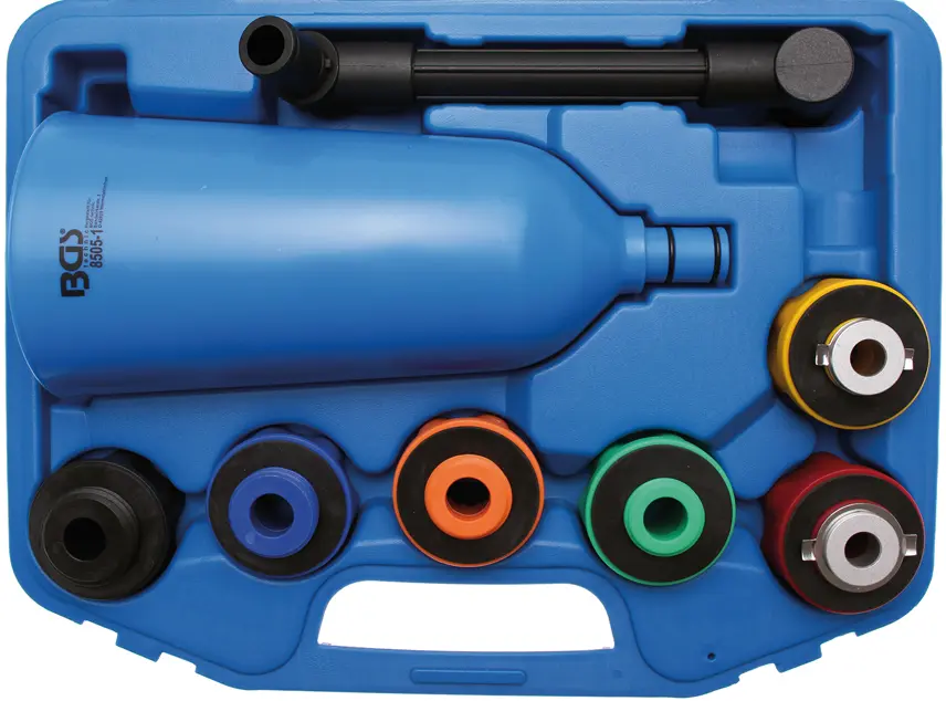 Plastová plnička oleja BGS technic so sadou adaptérov na plnenie oleja