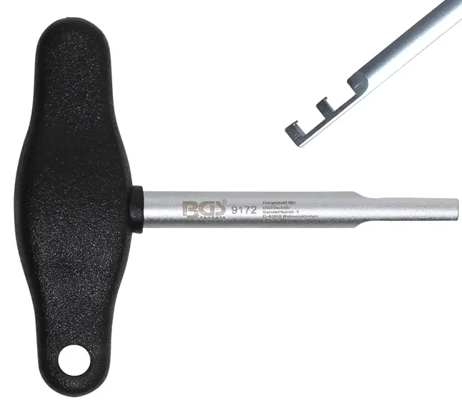 Speciální přípravek BGS109172 usnadňuje demontáž patic zapalovacích svíček u vozidel koncernu VAG a minimalizuje riziko poškození při práci. Ergonomická rukojeť zajišťuje pevný úchop a přesné vedení nástroje.