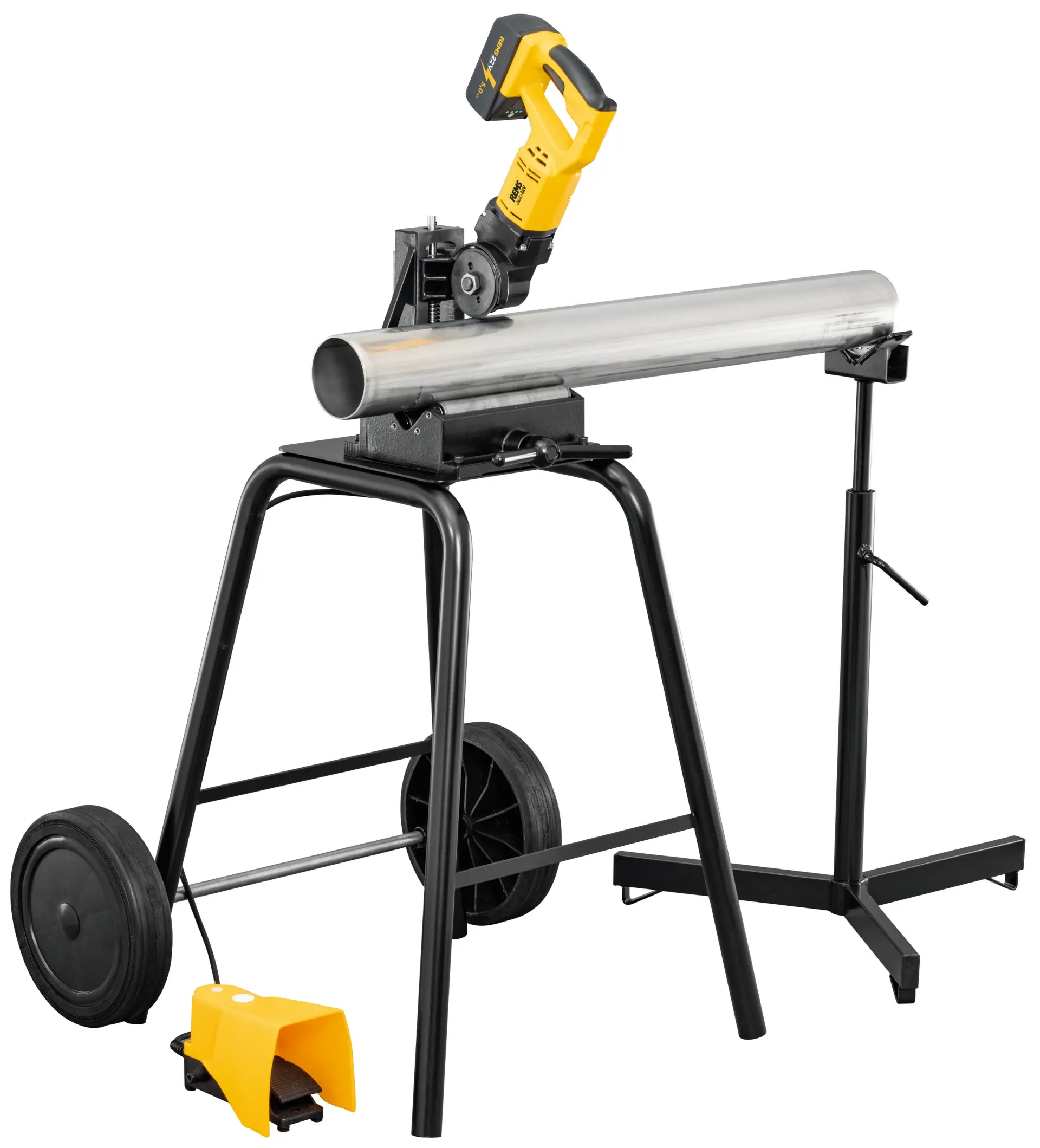 • Akumulátorový stroj na delenie rúrok na rýchle, pravouhlé delenie a odhrotovanie bez vonkajšieho otrepu do Ø 155 mm