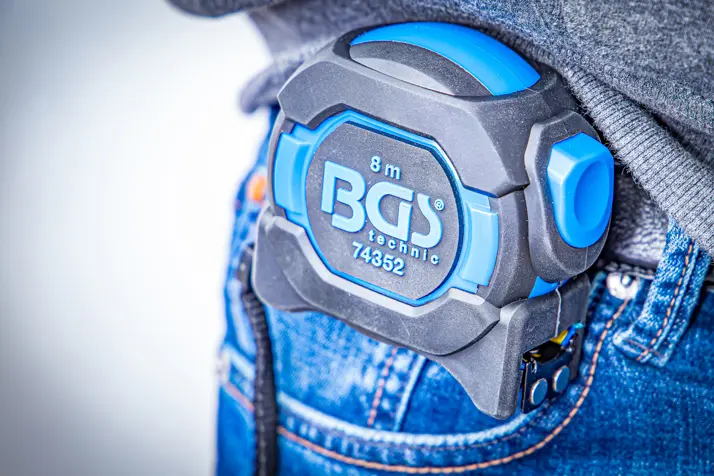 Svinovací metr BGS1074352 nabízí délku 8 metrů, robustní konstrukci a čitelnou stupnici pro přesné měření v dílně i na stavbě. Praktický klip umožňuje snadné uchycení za opasek.
