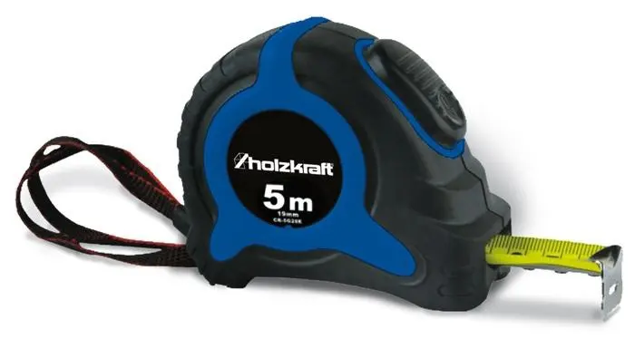 Svinovací metr Holzkraft TBM 5 x 19 (5 m) - Automatické navíjení pásma - Kryt z pevného plastu a nerezové oceli - Robustní poutko a kovová spona za pásek - Včetně 2 malých magnetů