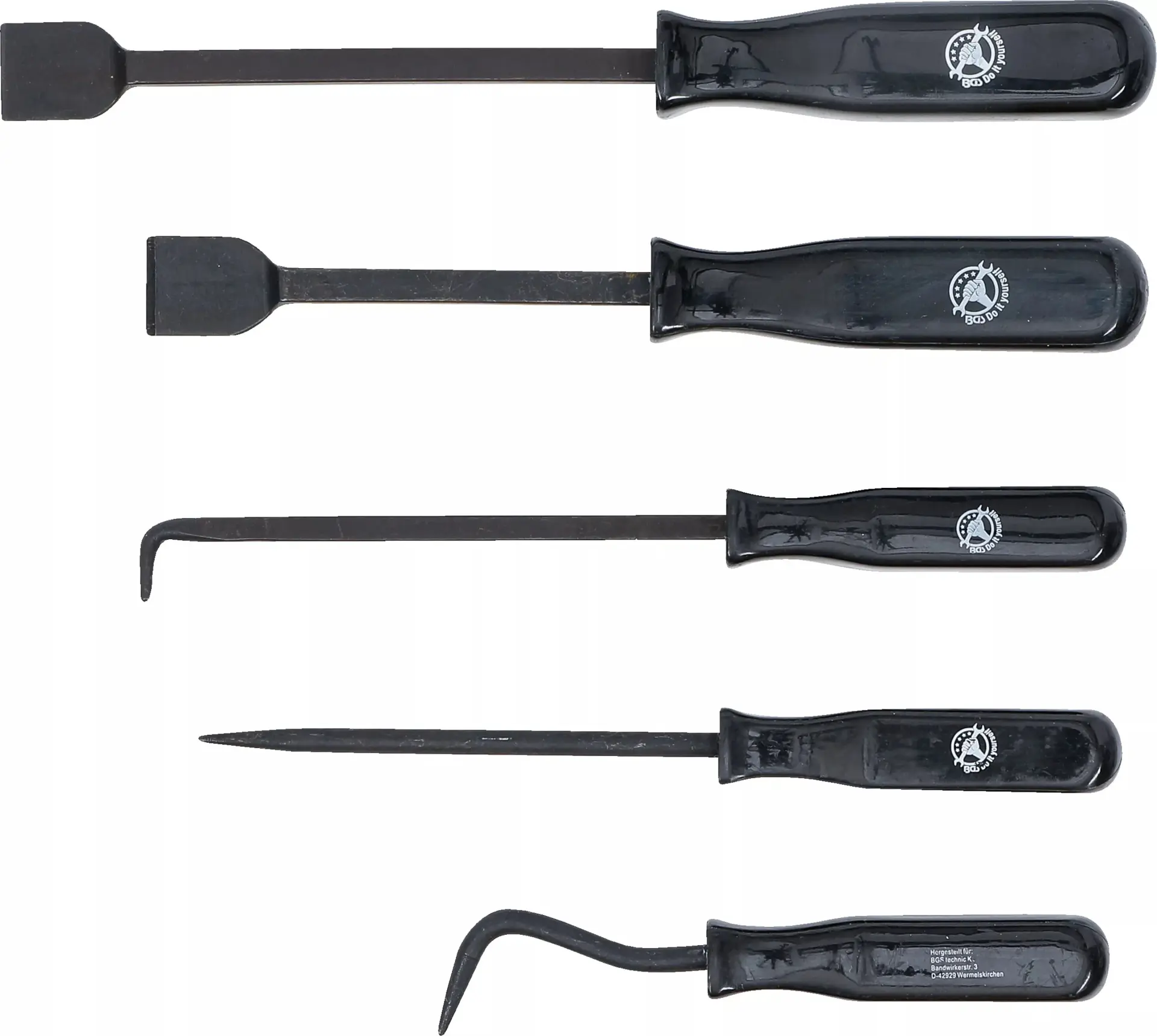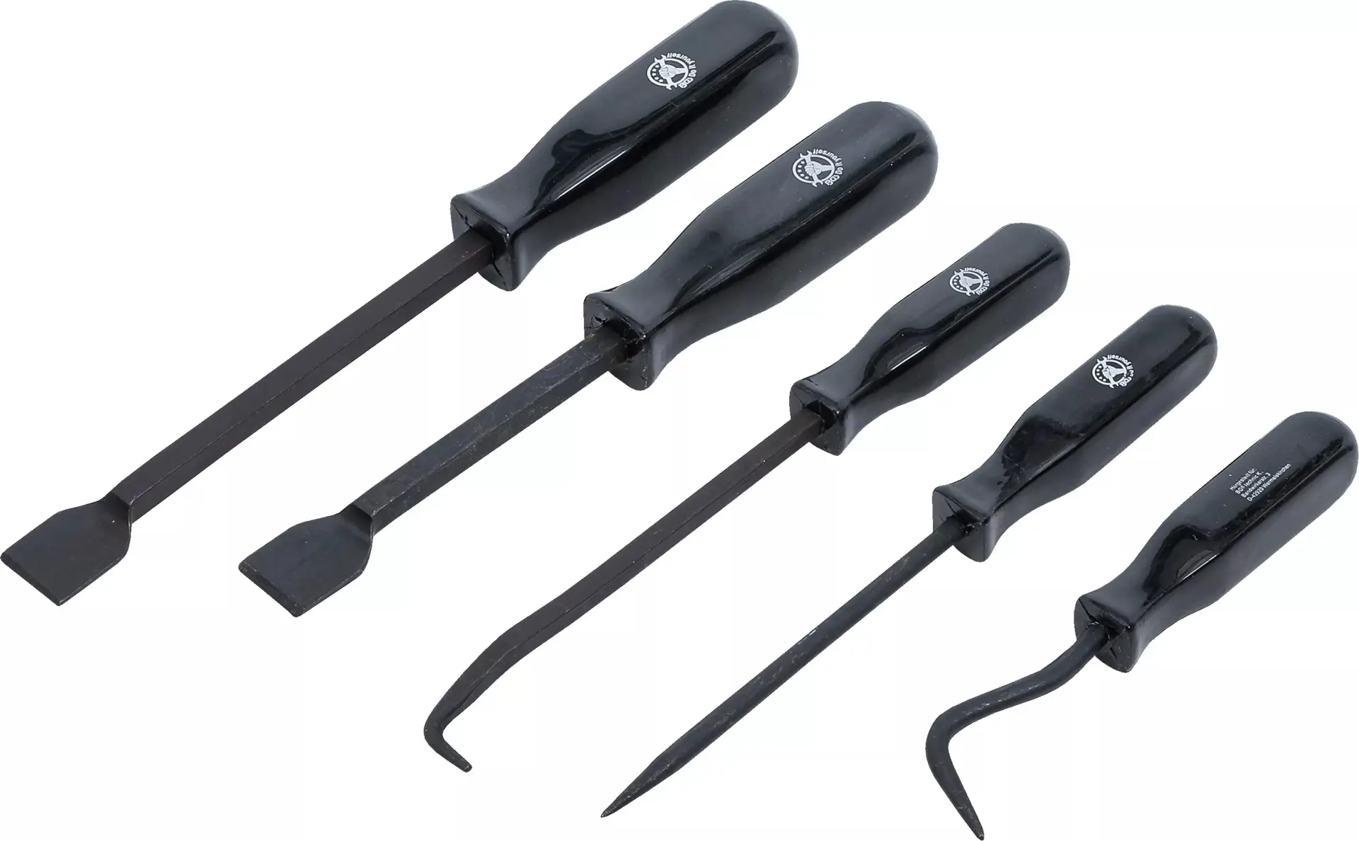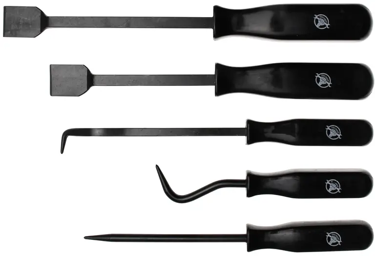 Sada montážních háků a šábrů Kraftmann obsahuje pět různých nástrojů pro snadné vytahování, montáž a demontáž dílů v dílně i domácnosti. Ergonomické rukojeti zajišťují pevný úchop a pohodlnou manipulaci při práci.