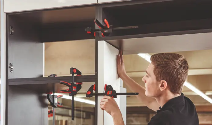 Ľahká jednoručná svorka Bessey vhodná na prácu nad hlavou a všade tam, kde na upnutie môžeme využiť iba jednu ruku.