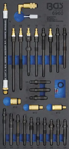 Vybavená vložka do dielenského vozíka 1/3: Adaptéry pre testery na skúšku kompresie a testery úniku tlaku