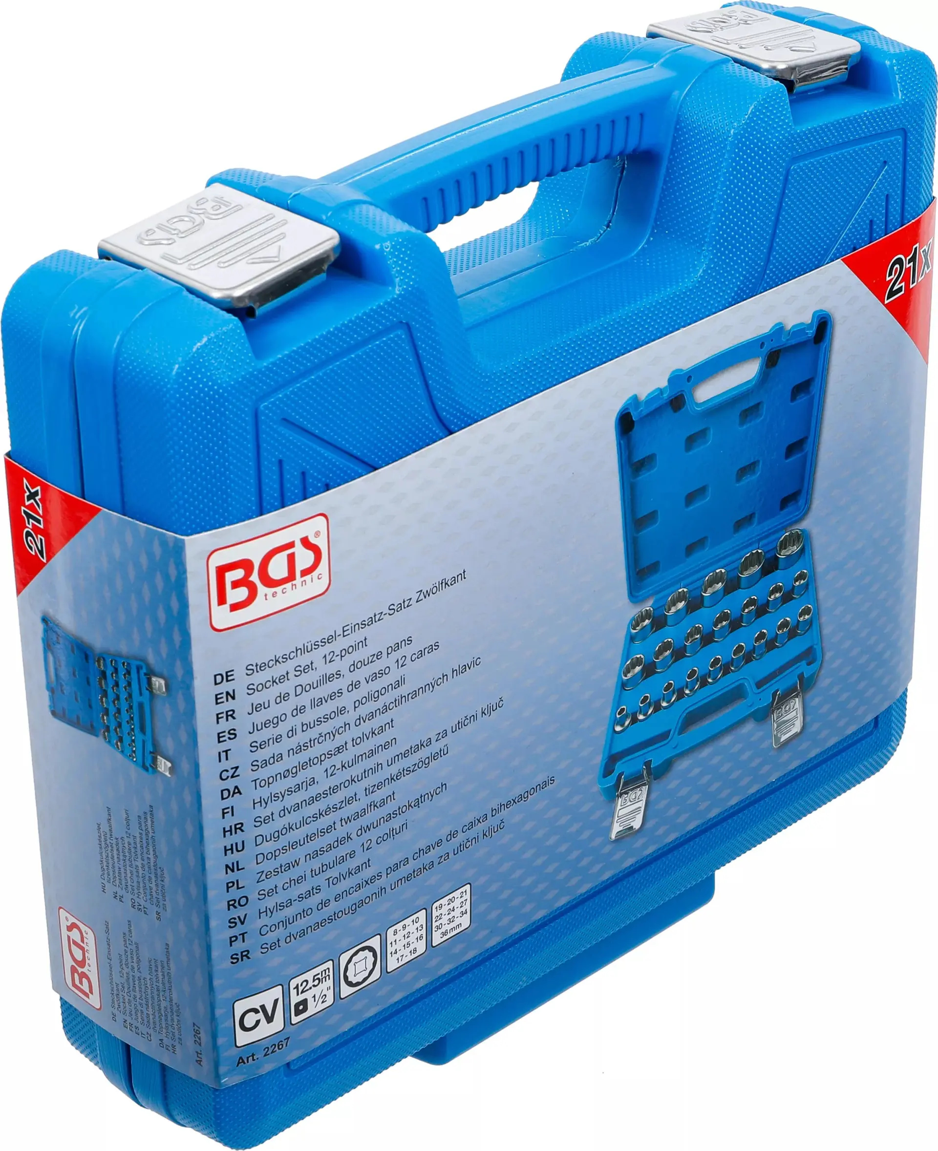 Nástrčné hlavice 1/2" 12-hranné 8 ÷ 36 mm. (Sada 21 ks). BGS 2267 (BGS102267)