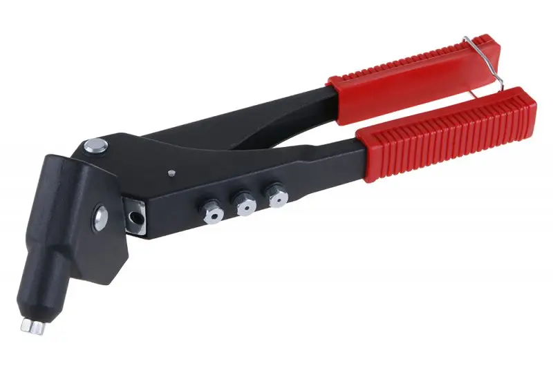 Otočná hlava umožňuje nastaviť pracovný uhol podľa aktuálnej potreby, čím sa zvyšuje flexibilita pri práci. Tento mechanizmus oceníte najmä pri nitovaní v rohoch, na hranách alebo v stiesnených priestoroch, kde je potrebné presné vedenie nástroja. Ergonomicky tvarované rukoväte zabezpečujú pevný úchop a znižujú únavu rúk pri dlhodobom používaní.
