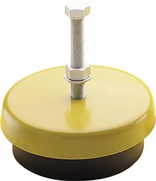 Prevedenie: Elastomérové teleso zo syntetického kaučuku, odolné proti oleju a starnutiu, vonkajší uzáver z kovu, žltý práškový náter, prítlačná doštička z tvárnej liatiny, skrutka z ocele, pozinkovaná.
