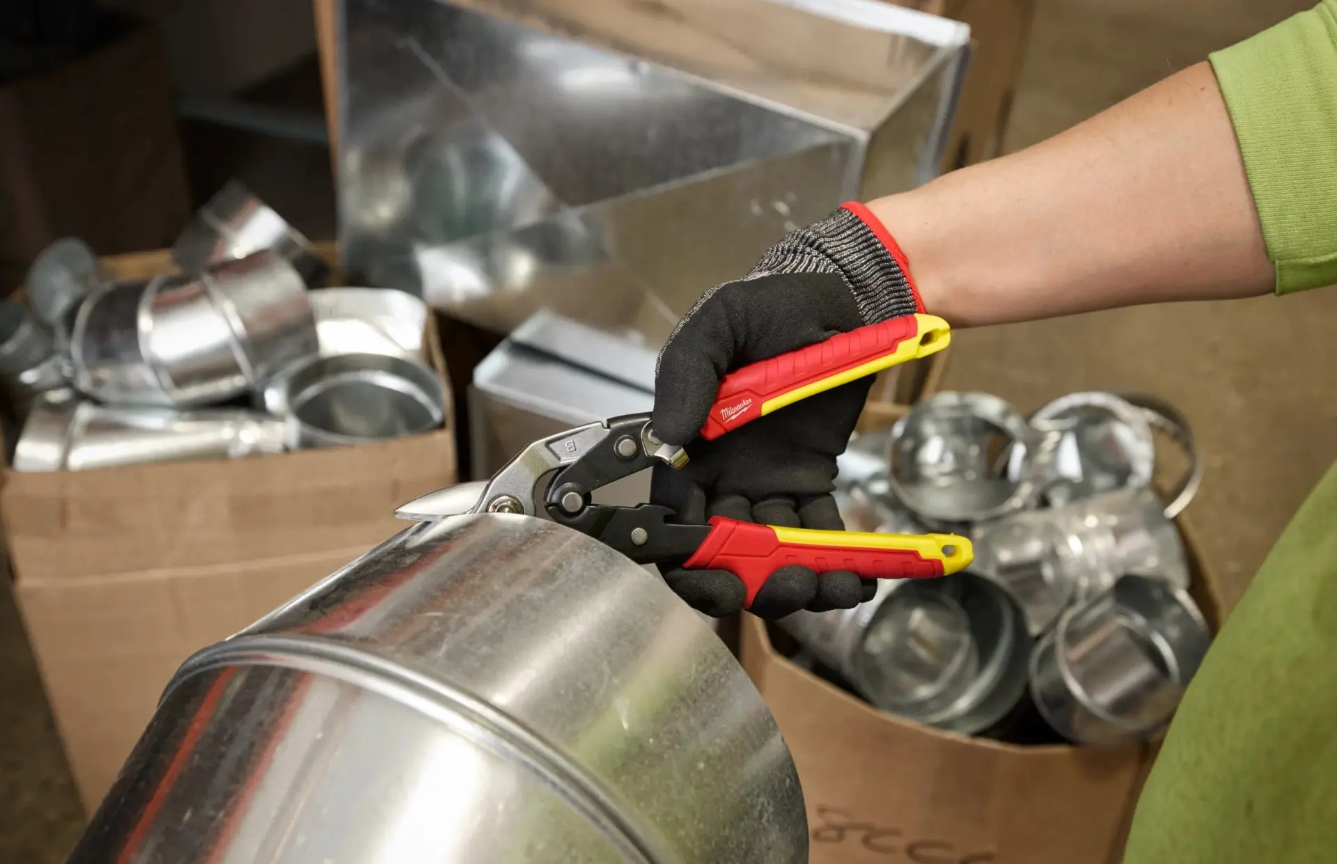 - Otvory na palec a ukazovák pre väčšie pohodlie a menšiu únavu. Umožňuje používateľovi ľahko rezať plech s menším rizikom porezania