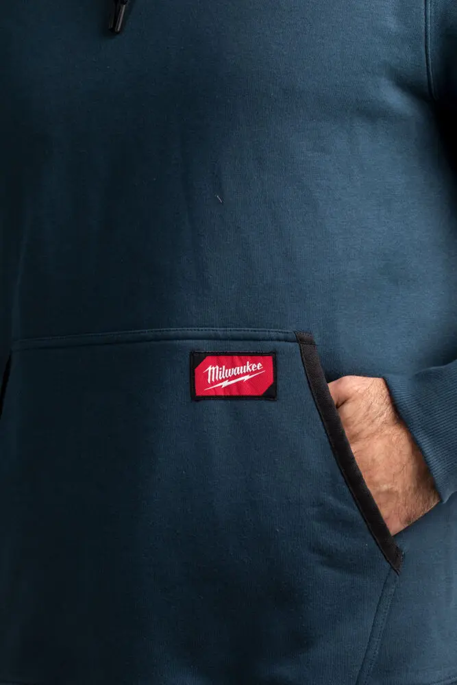 Pracovní mikina s kapucí Milwaukee WH MW v modré barvě a velikosti S je vyrobena z odolného materiálu a nabízí praktickou kapuci pro ochranu před větrem. Vhodná pro každodenní nošení na stavbě i v dílně.