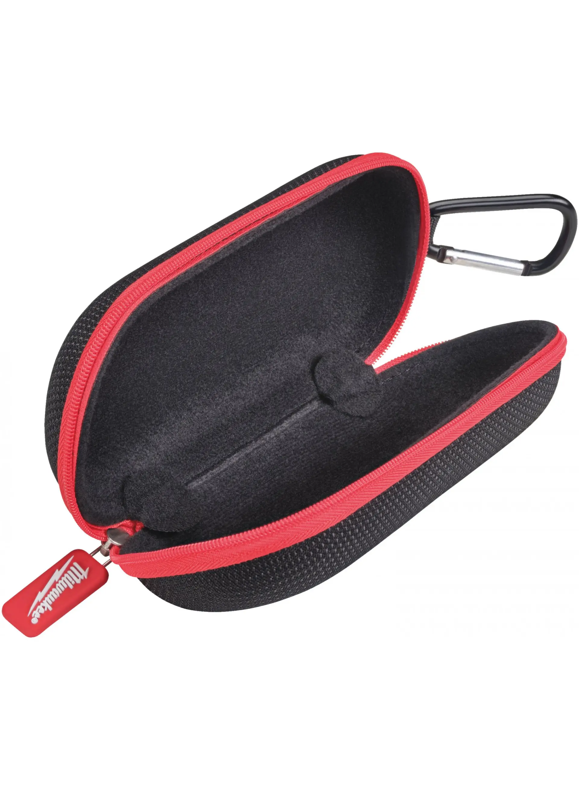 Pevné pouzdro Milwaukee chrání ochranné brýle před poškozením a prachem, je vybaveno zipem a poutkem pro snadné přenášení i zavěšení.