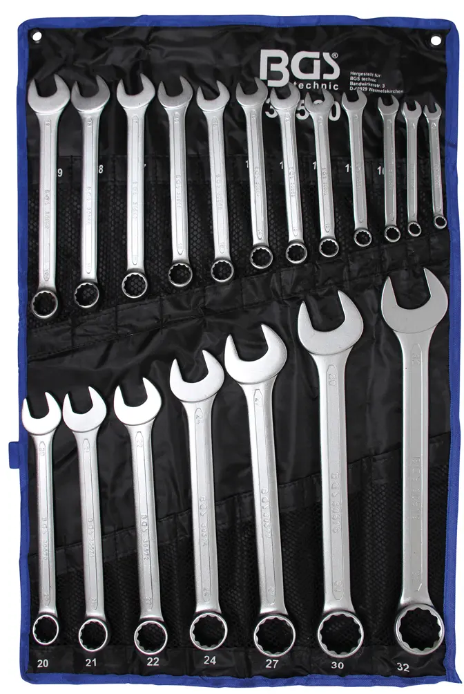 Kombinované kľúče 8 ÷ 32 mm BGS1030500. DIN 3113A. Sada 19 dielov v taške (BGS1030500)