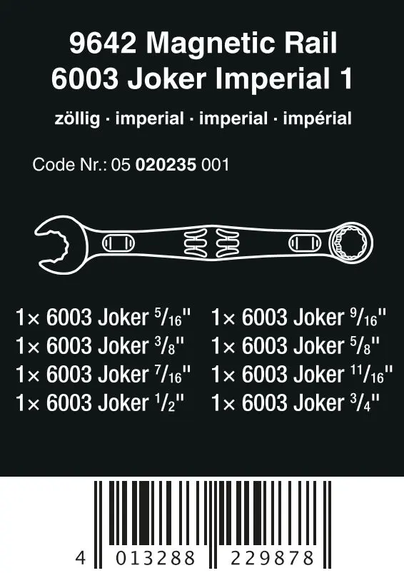 Wera 020235 Očkoploché kľúče 5/16 ÷ 3/4" 6003 Joker Imperial 1 na magnetickej lište, 9642 (Sada 8 dielov) (W05020235001)