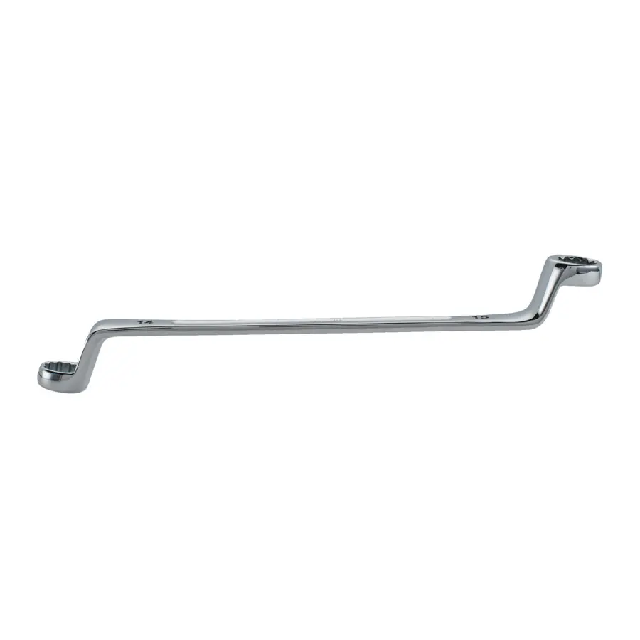 Oboustranný očkový klíč Milwaukee s vyhnutím 75° umožňuje snadný přístup ke šroubům v hůře dostupných místech, rozměry 14 x 15 mm. Robustní konstrukce zajišťuje dlouhou životnost při každodenním používání.