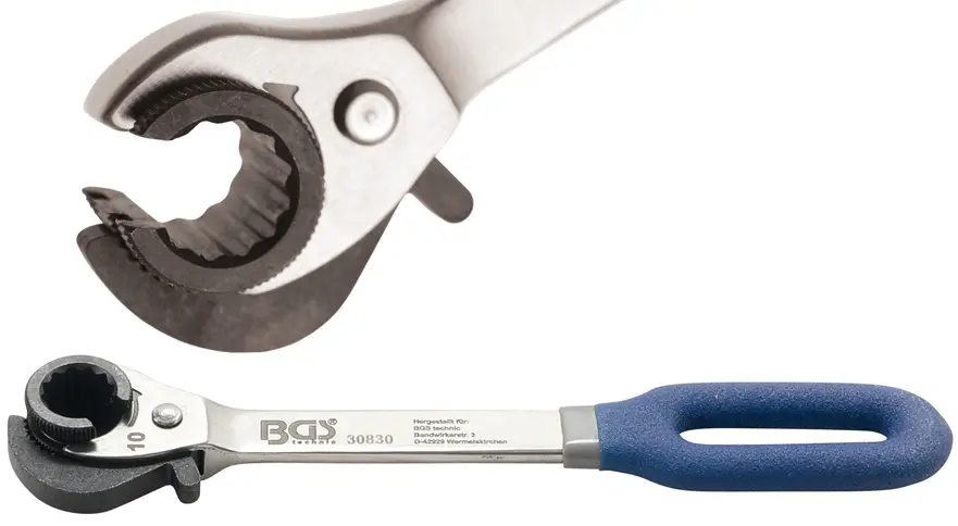 Otvorený prstencový kľúč 10 mm s račňou BGS1030830 na prevlečnej matice (BGS1030830)