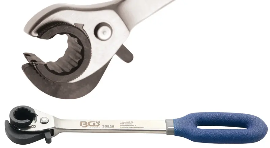 Otvorený prstencový kľúč 8 mm s račňou BGS1030828 na prevlečnej matice (BGS1030828)