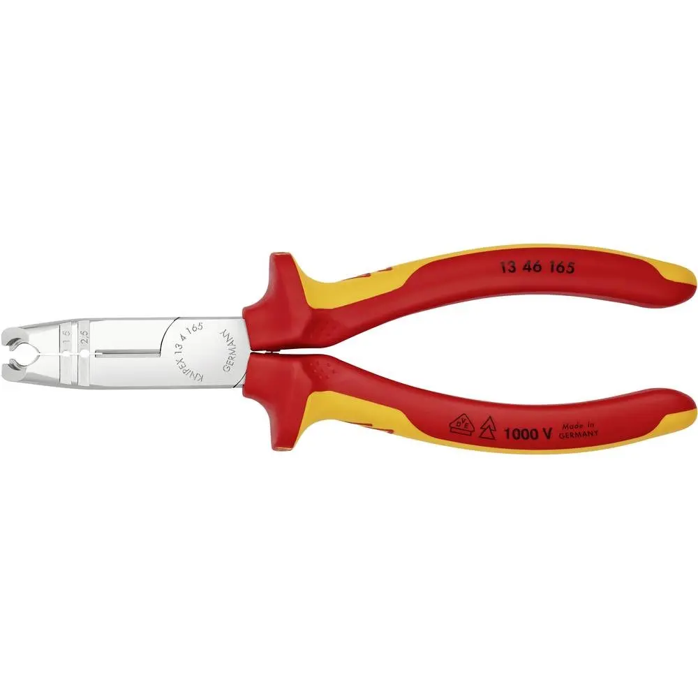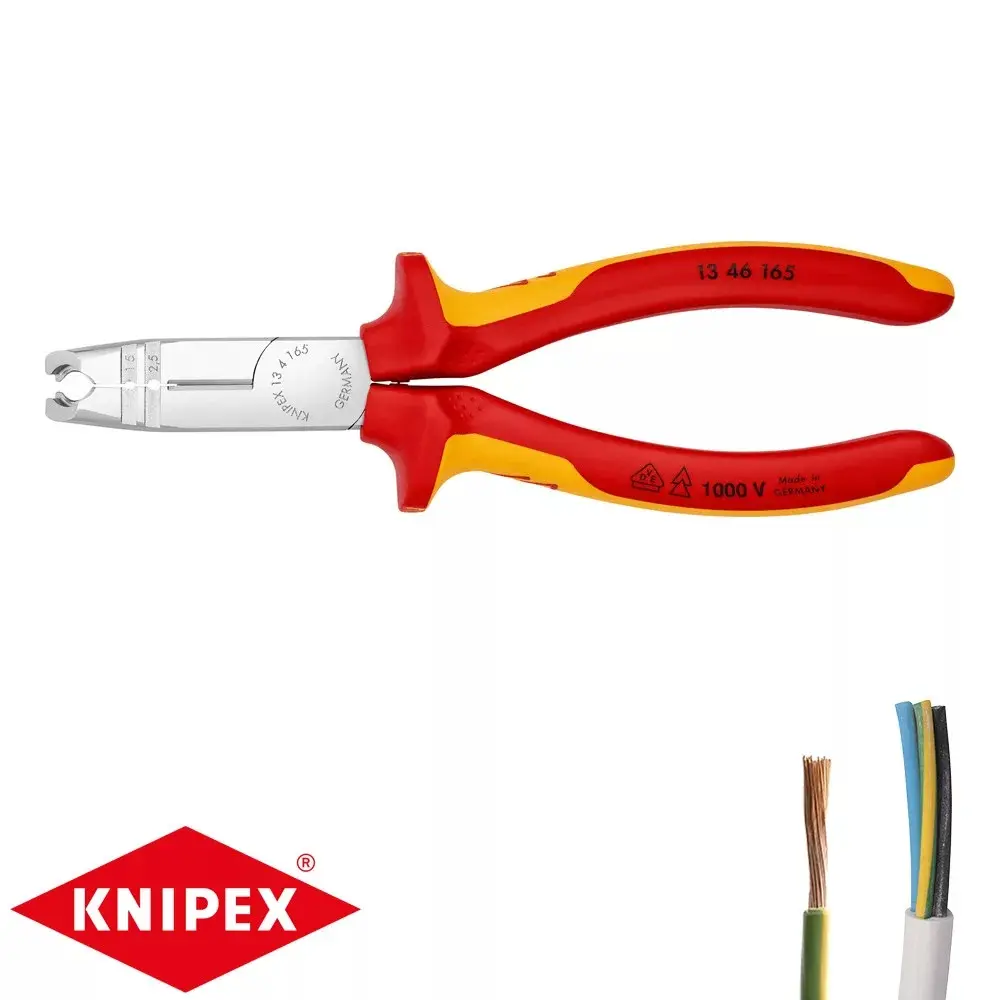 Pochromované odizolovací kleště KNIPEX 13 46 165 s vícesložkovými návleky umožňují přesné odizolování vodičů a splňují normu VDE pro práci pod napětím. Délka 165 mm zajišťuje snadnou manipulaci i v hůře přístupných místech.
