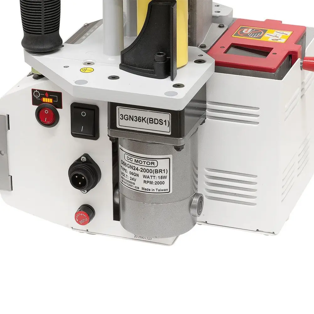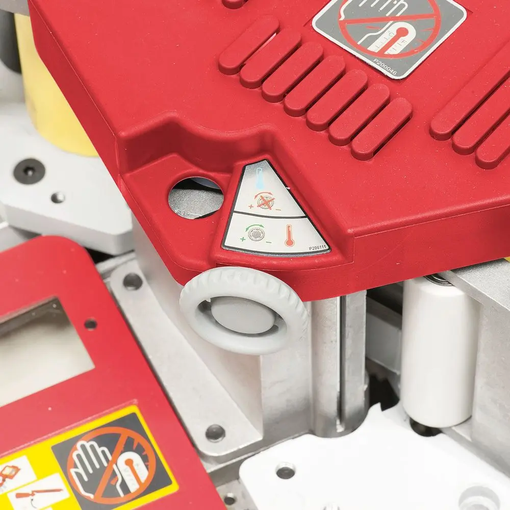 Olepovačka hrán Bernardo DR 500 S - Výkon motora [W]: 855 - Napätie [V]: 230 / batéria - Hrúbka hrany (PVC) [mm]: 0,3 ÷ 3,0 - Hrúbka lepenej dosky min. / 2 ÷ 3 ÷ max. [mm]: 10 ÷ 65 - Pracovná teplota - 1. stupeň [°C]: 120 ÷ 200 - Pracovná teplota - 2. stupeň [°C]: 80 ÷ 155 - Rýchlosť posuvu (nepretržitá) [m.min-1]: 2 ÷ 6 - Zásobník lepidla [ml]: 400 - Čas ohrevu [min]: 4 (120 °C) - Rozmery [mm]: 340 × 300 × 350 - Hmotnosť [kg]: 8,5 Bernardo DR 500 S olepovačka hrán Modely olepovačky hrán na drevo radu DR 500 ponúkajú vysokú pridanú hodnotu, pretože integrovaný akumulátor umožňuje bezdrôtovú prevádzku. Vďaka kompaktnej konštrukcii je tento stroj ideálny pre všetky drevárske firmy, a to v dielni aj pri montáži. - Nastaviteľný vodiaci systém na použitie pri hrúbkach 0,3 - 3 mm alebo výškach hrán 10 - 65 mm. - Ideálny na opracovanie hrán z ABS, PVC, melamínu a dyhy - 2 pogumované rukoväte a výškovo nastaviteľná vodiaca doska zaručujú bezproblémovú prevádzku