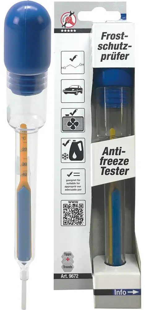 Hustoměr Kraftmann BGS109672 umožňuje rychlé měření koncentrace nemrznoucí směsi v rozmezí -10 až -40 °C, což usnadňuje kontrolu ochrany chladicího systému. Praktická stupnice zajišťuje snadné odečítání výsledků.