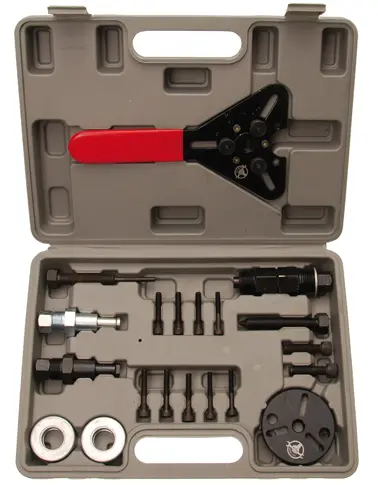 Sada přípravků Kraftmann BGS108825 je určena pro demontáž a montáž klimatizačních spojek kompresoru, kompatibilní s běžnými typy vozidel. Robustní konstrukce zajišťuje dlouhou životnost při opakovaném použití.